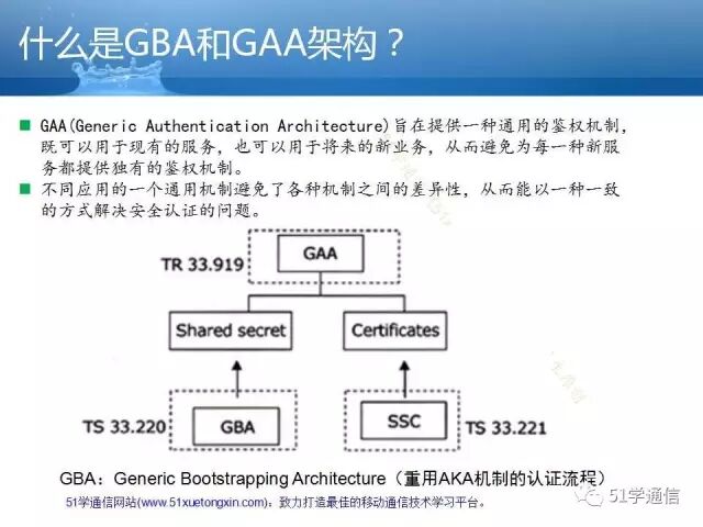 - GBA引导认证和业务访问认证过程,密钥生成及管理。